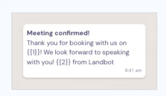 一旦潜在客户提供了他们的联系方式并且预约已经预约,他们将收到一条带有确认信息的 WhatsApp 消息,以此来证实选择加入,就像您在下面看到的示例一样。